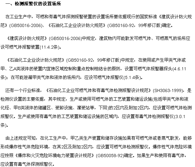 石油化工氣體監(jiān)測(cè)報(bào)警器的設(shè)置