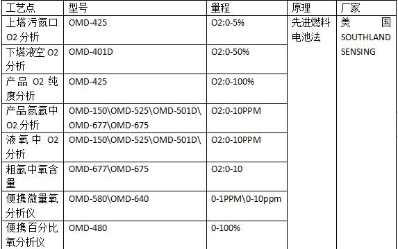 空氣分離中在線分析主要是對(duì)工藝穩(wěn)定和生產(chǎn)安全的相關(guān)參數(shù)進(jìn)行分析。空分設(shè)備的特點(diǎn)是整個(gè)工藝裝置龐大,穩(wěn)定性一旦破壞就需要很長(zhǎng)時(shí)間才能恢復(fù),所以需要將裝置中的重要成分及時(shí)地提供給操作人員;二是對(duì)產(chǎn)品質(zhì)量的監(jiān)測(cè),空分設(shè)備的產(chǎn)品質(zhì)量對(duì)冶金企業(yè)后續(xù)的冶煉工藝直接影響,必須把好質(zhì)量關(guān)。由于在空分流程的各個(gè)階段配置有不同類型的監(jiān)測(cè)不同氣體介質(zhì)對(duì)象的在線分析儀表,因而,可通過(guò)分析儀表的輸出信號(hào)了解分餾塔內(nèi)的運(yùn)行工況,并能控制流程在最佳工況下生產(chǎn)出純度合格的O2、N2、Ar及低溫液體和產(chǎn)量要求,也可保證高純氣體是否達(dá)到純化后的質(zhì)量標(biāo)準(zhǔn)。